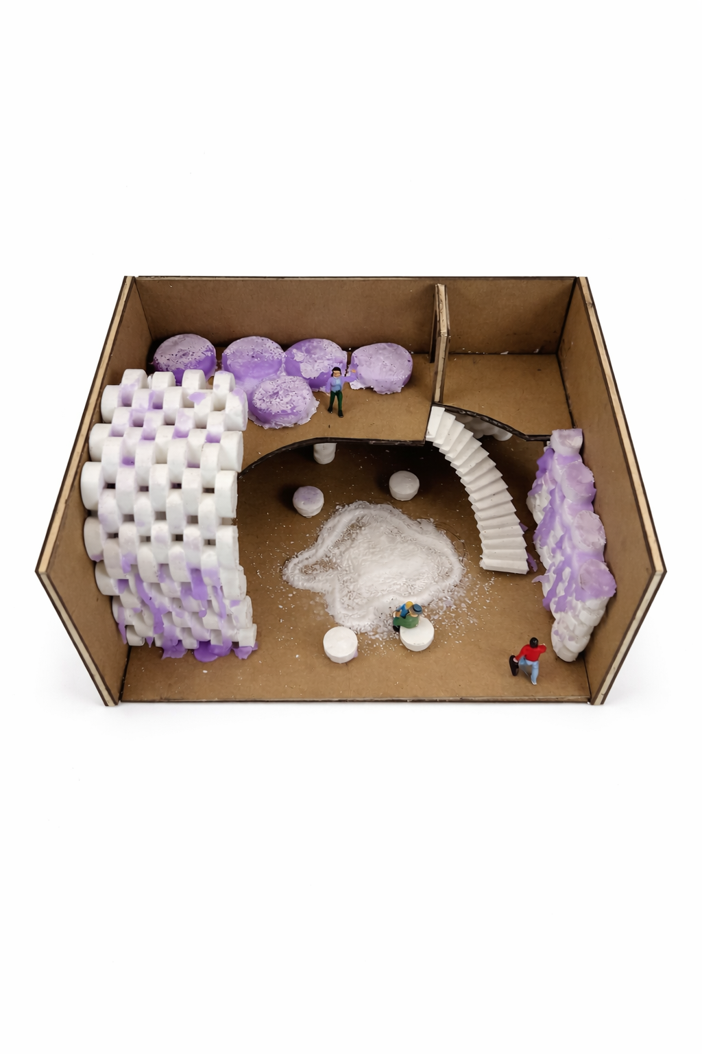 We used these models to explore how yarn could shape the space through installations, seating, and threshold elements. Each model helped visualize the material’s potential to create playful, tactile experiences within the children's library.